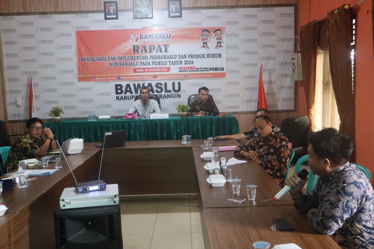 BAWASLU KABUPATEN MERANGIN ADAKAN RAPAT SOSIALISASI DAN IMPLEMENTASI PERATURAN BAWASLU DAN PRODUK HUKUM NON PERATURAN BAWASLU PADA PEMILU 2024