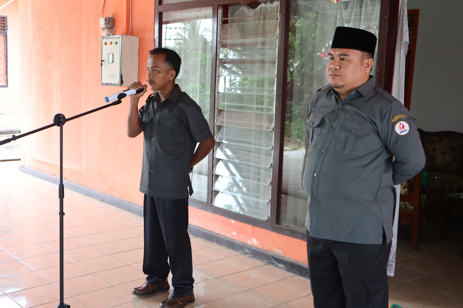 Anggota Bawaslu Kabupaten Merangin Markus, S.Pd.I yang juga Koordinator divisi pencegahan, partisipasi masyarakat, dan hubungan masyarakat sebagai Pembina Apel.