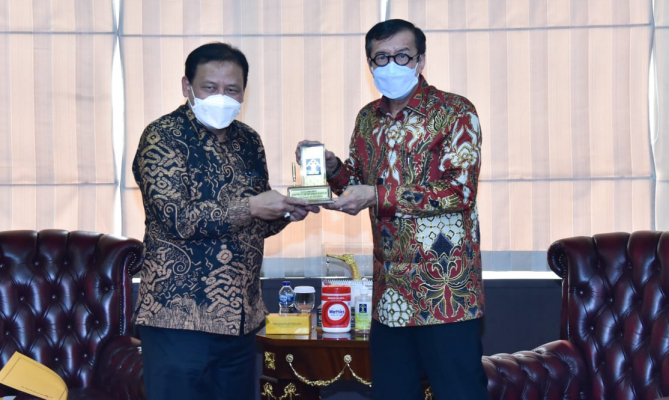 Dalam audiensi ini, Ketua Bawaslu Abhan didampingi Anggota Bawaslu Ratna Dewi Pettalolo yang diterima langsung oleh Menteri Hukum dan Ham (Menkumham) Yasonna Laoly di Kantor Kemenkumham Jakarta Selatan, Senin (31/5/20210).