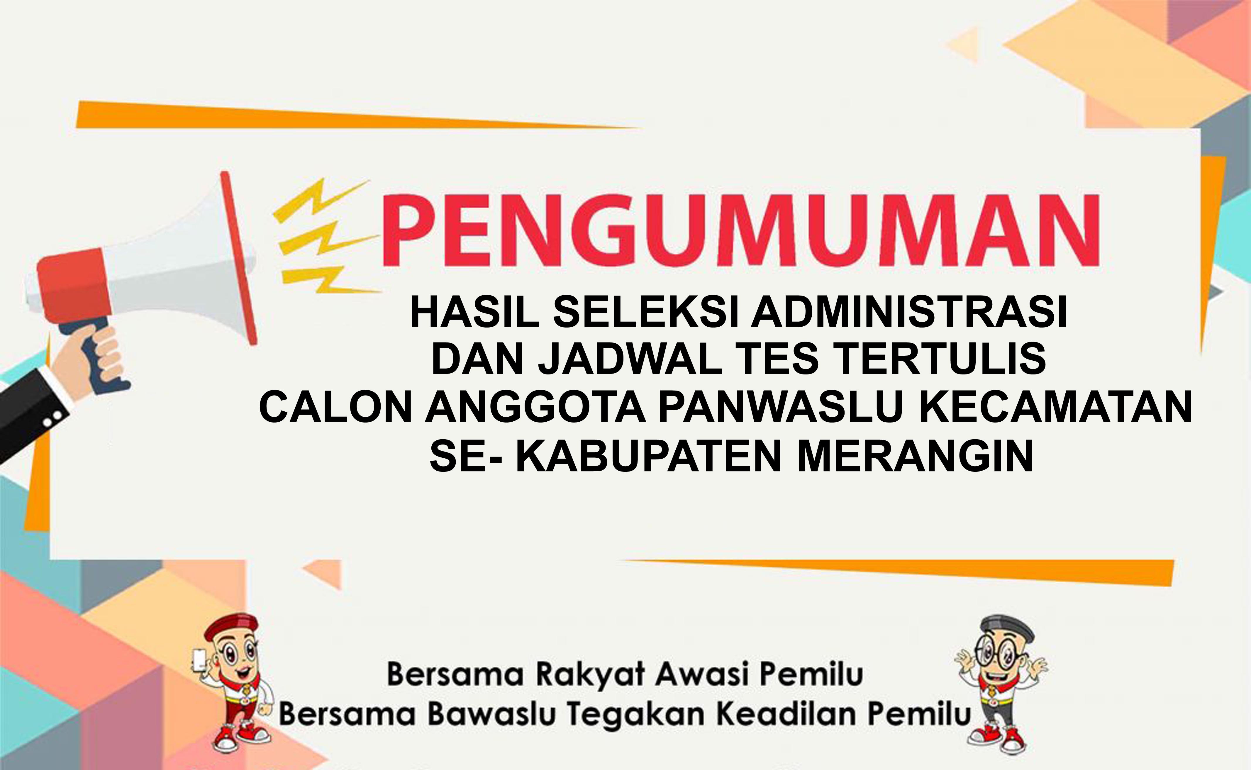 Berikut Pengumuman jadwal tes tertulis calon anggota Panwaslu Kecamatan se Kabupaten Merangin